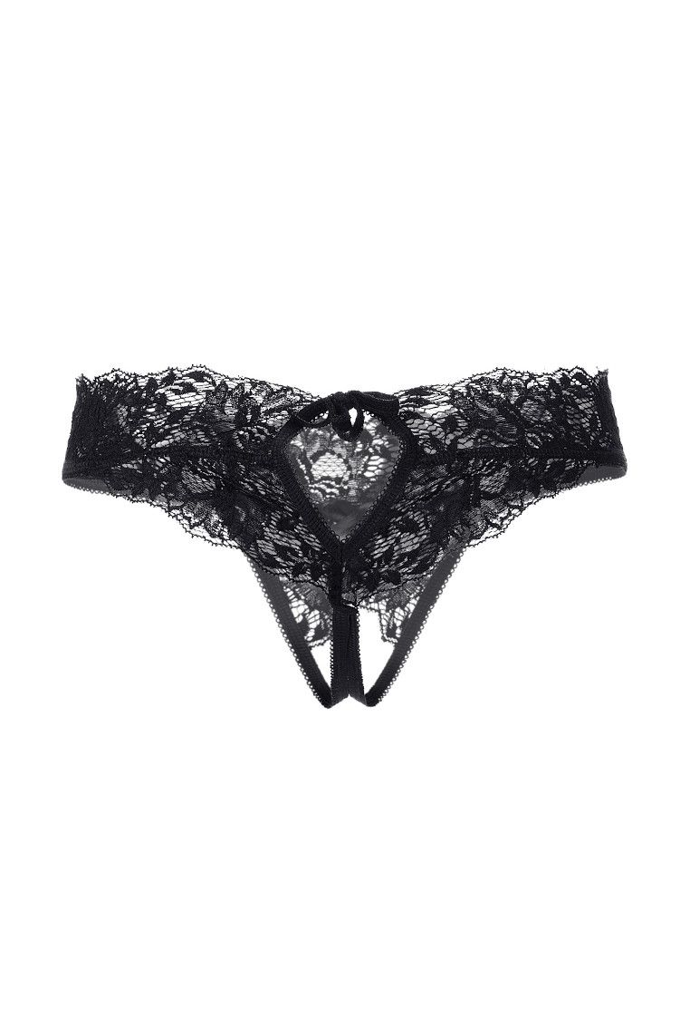Эротические трусики кружевные, эластичные. Спереди атласный бантик. Сзади декоративный вырез регулируется бантом. Свободный кружевной край сзади и на линии талии. Допускается замена кружева на аналогичное.