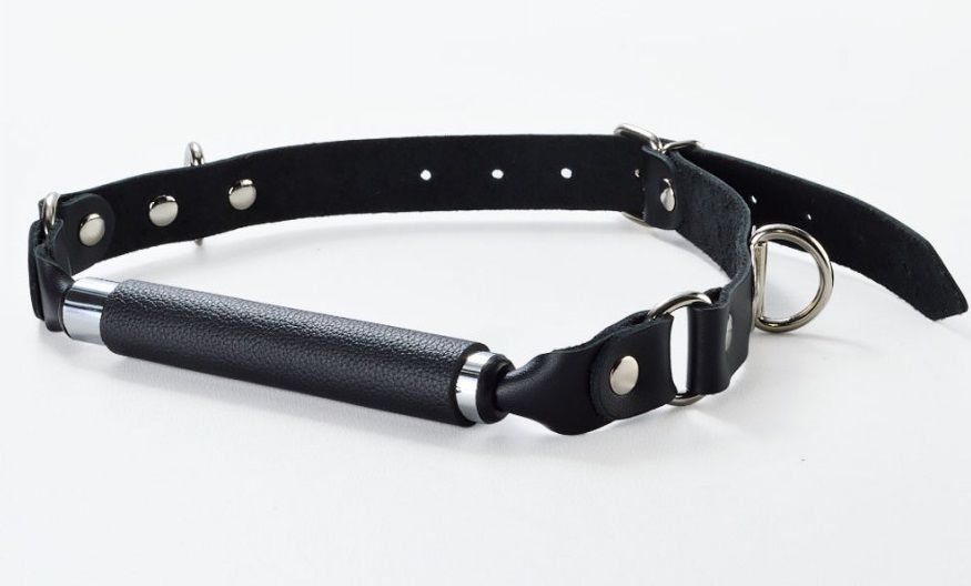 Кляп – трензель. Ремешки изготовлены из натуральной кожи. Металлический трензель обтянутый мягкой натуральной кожей, благодаря небольшому диаметру позволяет оставлять рот не слишком широко открытым. Размер универсальный.