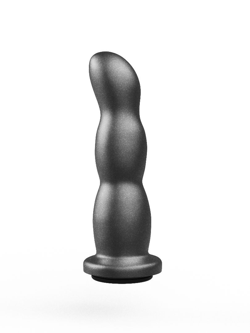 Анальная рельефная насадка-фаллоимитатор на плоском основании. Рабочая длина - 13 см. Диаметр головки - 2,8 см.