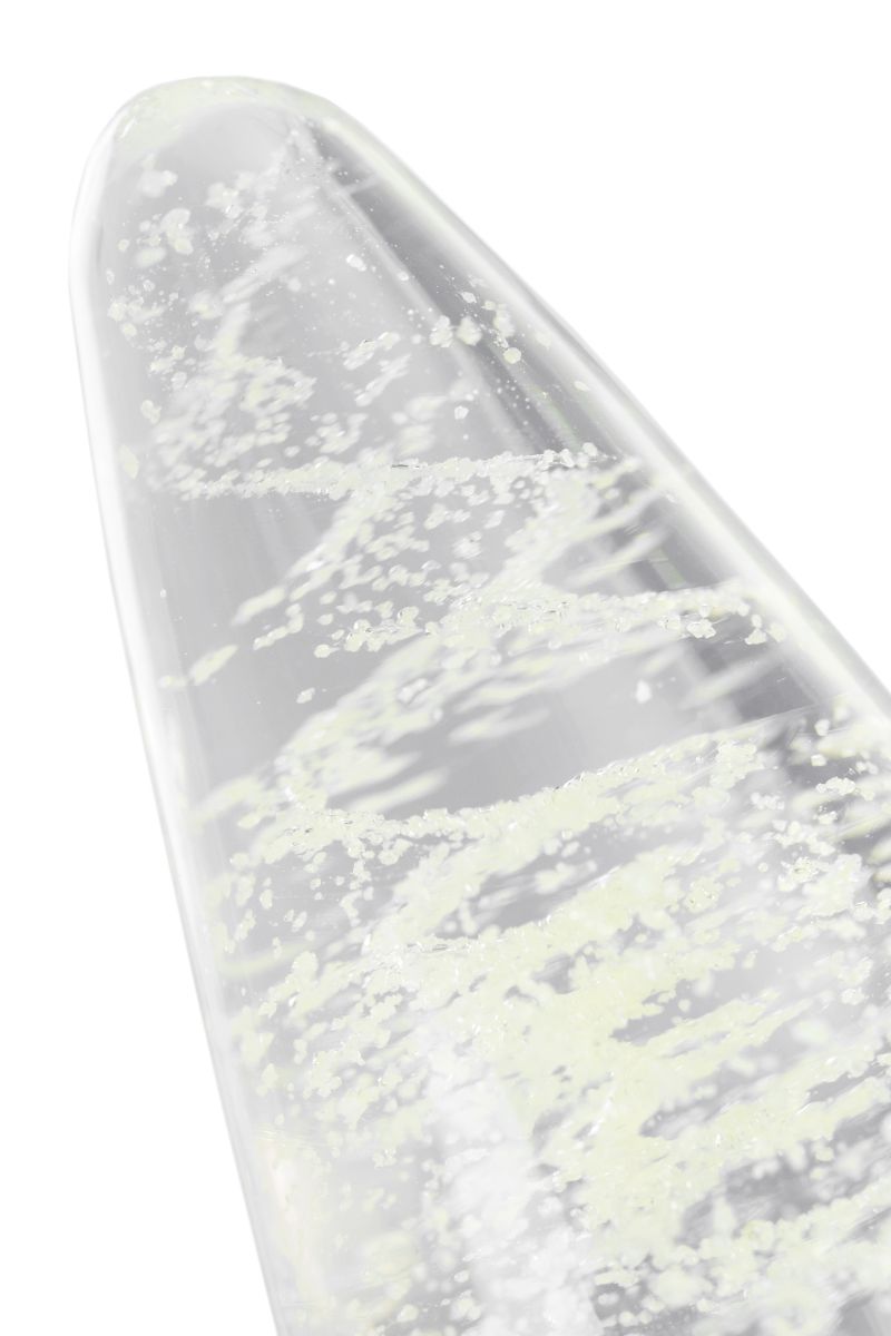 Прозрачная анальная втулка из закаленного стекла содержит флуоресцентные микрочастицы, которые светятся в темноте. Такой необычный дизайн помогает внести в интимные игры разнообразие. Достаточно зарядить игрушку под дневным или искусственным светом, чтобы насладиться ее мерцанием и свечением в темноте. Оптимальный размер, обтекаемая форма конуса и наличие ограничителя делают использование анальной игрушки безопасным.