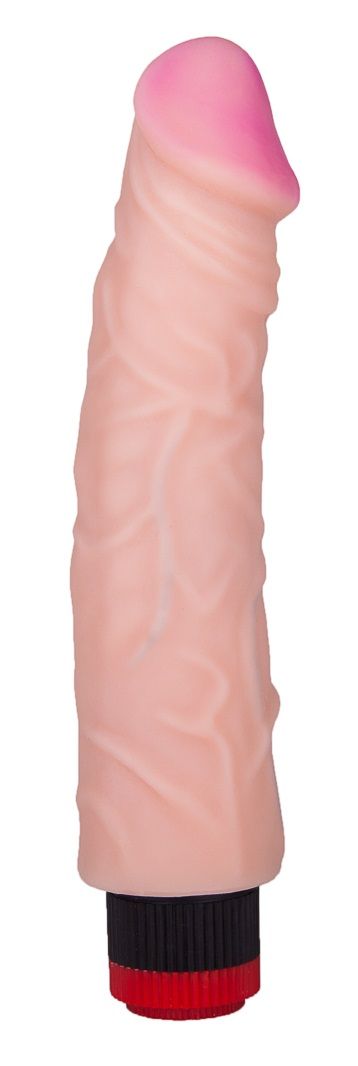 Вибромассажер выполнен из материала неоскин, качество которого гарантированно соответствует международным стандартам. Изделие имитирует мужской пенис с ярко выраженной головкой и рельефной поверхностью по всей длине ствола. Интим-аксессуар в таком исполнении – это отличное сочетание выгодной цены и высокого качества. Вибрацию можно легко регулировать с помощью плавных движений колесика, расположенного в основании игрушки. Рабочая длина - 20,5 см.