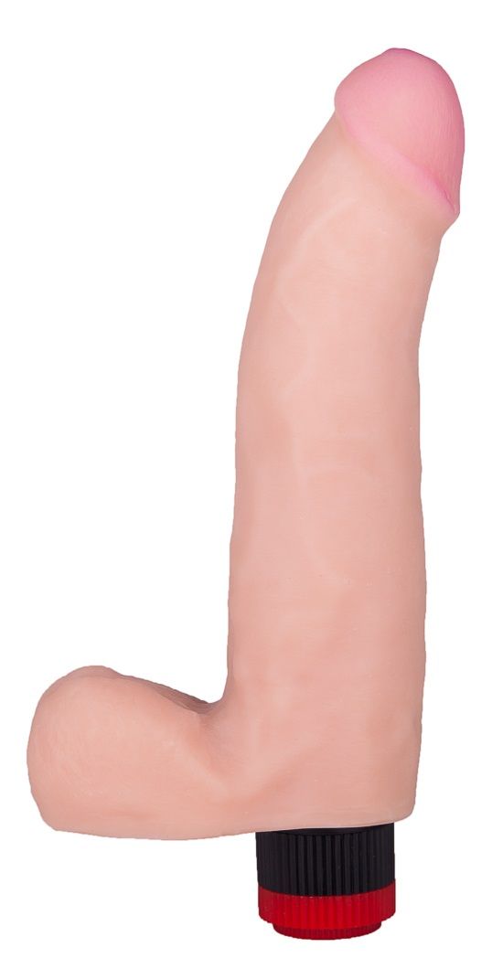 Довольно крупный и очень соблазнительный виброфаллос из композитного материала поможет вам воплотить в жизнь самые смелые фантазии. Невероятно реалистичная форма делает его еще более вожделенным. Технология протезирования позволяет вибратору с мошонкой изгибаться на угол до 70 градусов, а множественные вибрации сводят с ума. Рельефная поверхность дополнительно стимулирует вход в лоно. Рабочая длина - 17 см.